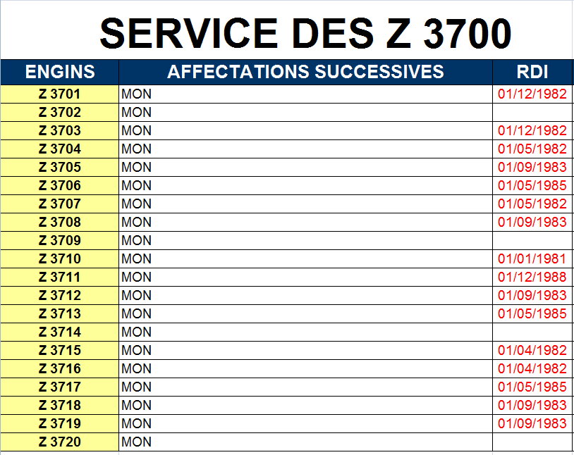 Je mets un tableau de radiation des Z 3700. Il ne faut pas tenir compte du jour du mois, mais juste le mois et l'année.....