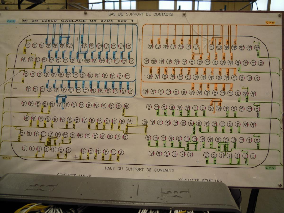 "Le fil vert sur le bouton vert, le fil rouge, sur le bouton rouge"..... Schéma de cablage de la partie électrique de l'attelage automatique d'une MI2N. Technicentre de St Pierre des Corps, le 15/09/2012.