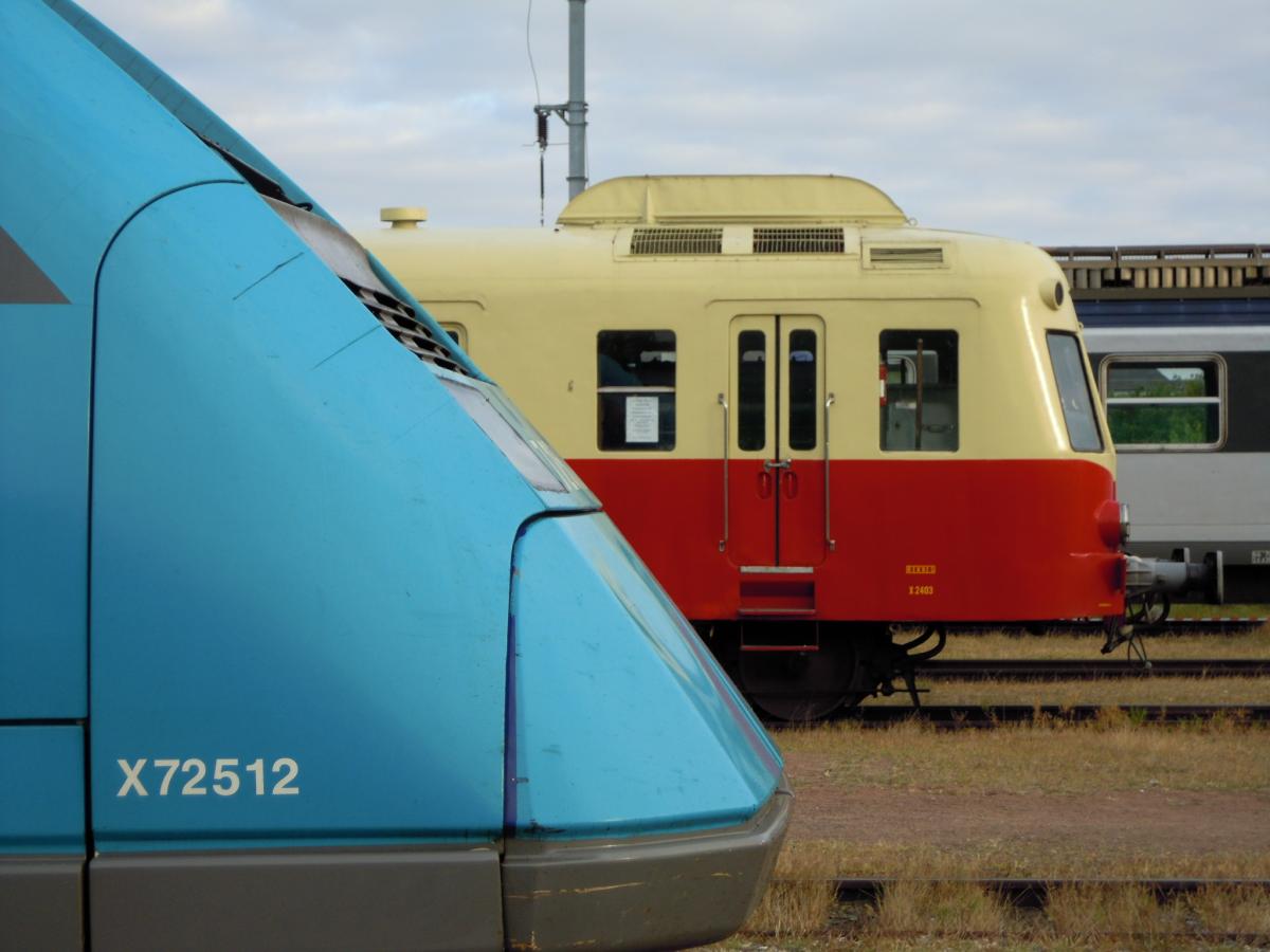 2 petites photos de l'X 2403 faites au dépot de St Pierre des Corps le 15/09/2012. Prêt pour la JPO le même jour au dépot et au technicentre Contraste des générations entre l'X2403 et l'X72512.... près de 50 ans séparent ces deux matériels...