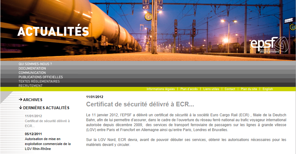 Trenitalia serait-elle la seule EF à faire la gueule??? Il y a une autre EF qui a obtenu son certficat pour les LGV en France..... Reste à ajouter, éventuellement d'autres LGV...