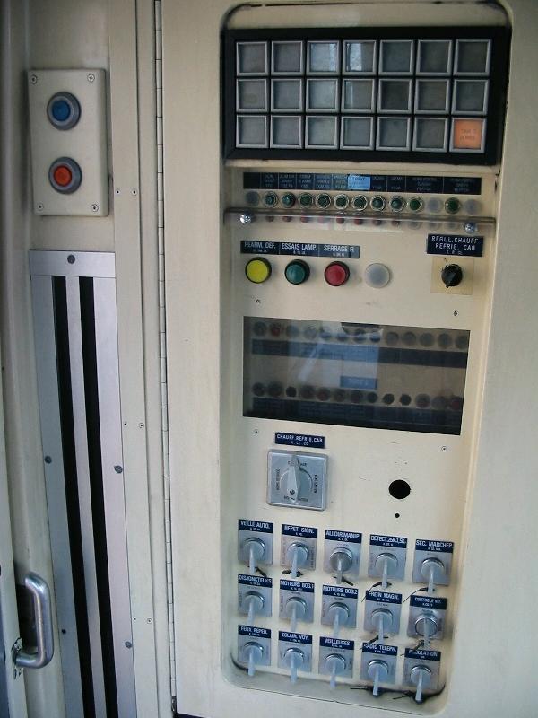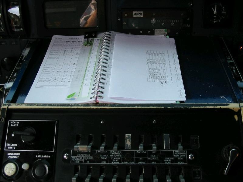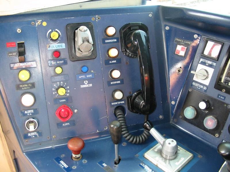 Salut suite à la discussion sur la Z8100, petit reportage sur un trajet avec une des ces rames (reportage favorisé par le beau temps et le fait que mon train avait 3/4 d'heure de retard ce qui m'a permis de mitrailler). Tout d'abord vue générale de la cabine de conduite : Détail de la voite à levier avec le fasciule horraire juste au dessus : Le Boitier de signalisation en position test (désolé, c'est flou mais j'avais le soleil de face, j'ai essayé de faire au mieux) : La partie gauche du pupitre avec la radio, le SAL, le SAR, le BFC.. Le fameux quotientmètre dont on a parlé dans le sujet technique Zoom sur les commandes des portes, FI, avertisseur et BP URG Le panneau d'affichage du code mission : Au cours de l'essai des freins, petit essai pour vous permettre de voir les fameux patins magnétiques en position repos et en action collés sur le rail L'armoire basse tension dans le dos du conducteur Petit zoom sur le boitier de signalisation n°2 en position test Enfin une vue du faisceau où je stationne avec un petit patachon qui attend pour rentrer au bourget. La suite dans quelques instants...