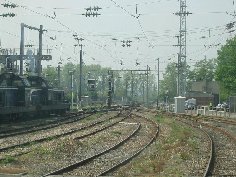 Une fois la partie statique terminée, quelques photos prises en ligne (désolé pour l'autocollant securit, je ne le pensais pas dans le champ...) Le patachon de la voie 7 a l'autorisation de départ, il va pouvoir s'élancer vers le bourget A mon tour de m'élancer, sans oublier la limitation à 10 km/h sur cette voie pour la présence de passerelle de visite de toiture Le barreau d'interconnexion LGV passe au dessus de la ligne à cet endroit Chantier VB de Villeparisis Etablissement pleine ligne de vert galant (comme la verdure autour) Sectionnement mobile de Sevran A l'approche d'Aulnay sous Bois : à gauche les voies du Tram-Train avec leur signalisation... D'ailleurs il y a un signal rouge à ma gauche : dois-je le respecter ??? Sortie de la gare d'Aulnay avec la rentrée vers le Bourget, zone que certains membres d'ici doivent connaitre Vue sur le faisceau du triage du bourget depuis la voie 2 qui est sur-elevée à cet endroit là Sortie du Bourget triage et gare du Bourget : à gauche : vers Bobigny, tout droit : vers Paris Nord Un aiguilleur en train de faire un sudoku Une pancarte qu'on rencontre qu'en région parisienne: j'ai beau regarder en haut, j'ai toujours pas trouver le club SM dont ils font pourtant la pub Gare de la plaine Stade de France, remplaçante de la gare La Plaine, permettant de rejoindre le stade très rapidement Le signal de sortie du stade : à gauche vers l'ex dépot de plaine et le faisceau chapelle, tout droit, vers paris nord (le signal qui fut ouvert une fois que le sudoku fut fini ??) Et pour finir une dernière photo qui est tout à fait ailleurs sur la ligne : A Roissy, il y a un Cèdre protégé et intouchable : La SNCF a fait un grillage pour protéger l'arbre du passage des trains, ça doit être assez unique en son genre. A+ Yaya