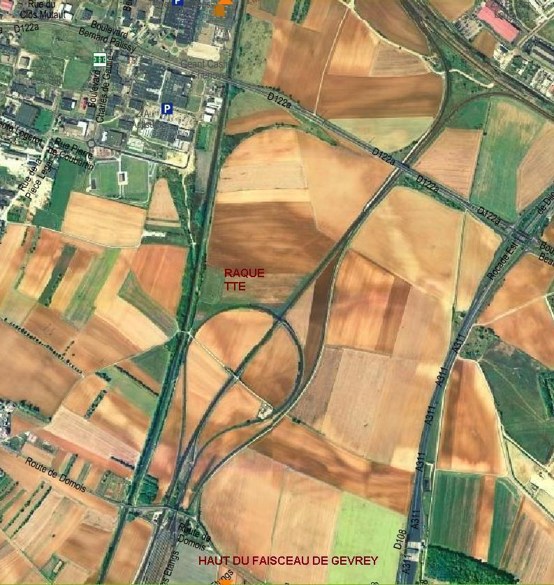 5. Salut je vous propose ça: Le nord de gevrey, sa raquette et les voies qui partent vers Perrigny. Yaya