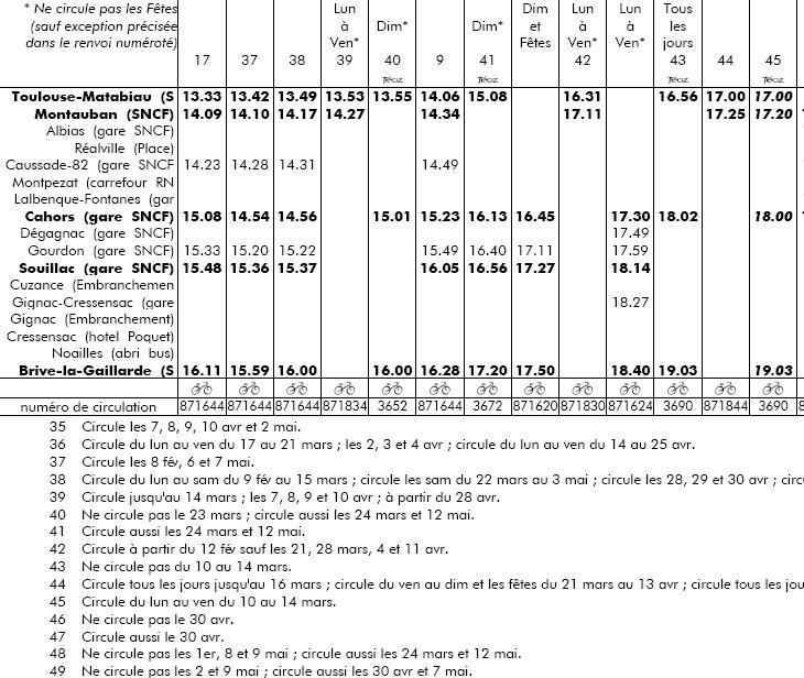 ERRATUM! Je suis allé trop vite en écrivant! Les indicateurs horaires et les fiches horaires de la Ligne Toulouse-Paris indiquent en fait que ce train circule tous les jours jusqu'au premier Avril[/u], et non jusqu'au 30 avril. Il n'est repris nul part dans ces documents.