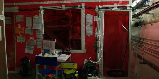 Surtout, sur l'ensemble du site, l'air est en dépression, grâce à un système de sas et de ventilation qui évite aux particules radioactives de se propager à l'extérieur. Dans les zones les plus contaminées, des "systèmes de confinement dynamiques" sont en outre mis en place : ces sortes de sas constitués de bâches plastiques isolent les travailleurs et empêchent l'air de sortir dans le reste du chantier grâce à de gros tuyaux aspirants et des filtres qui emmagasinent les radioéléments.