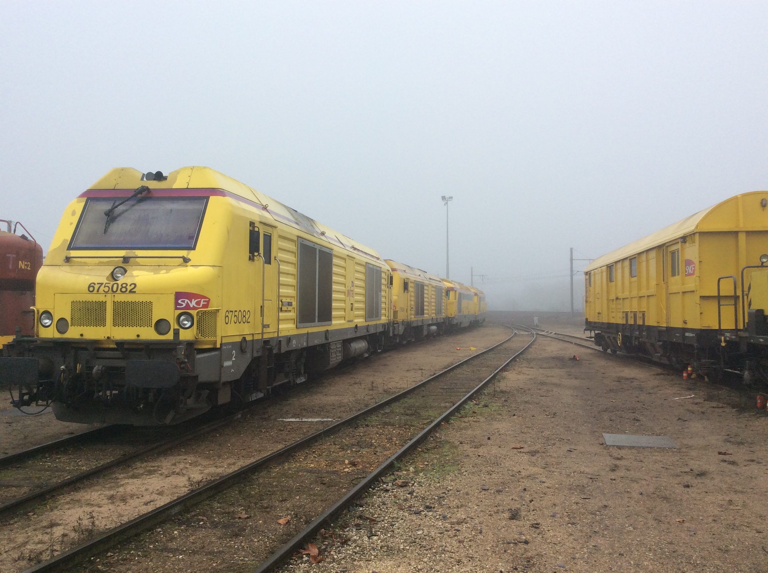 Du jaune au depot de Dijon Perrigny. Pas mal de 75000 infra au repos. À côté de la grue Kirow