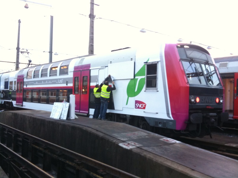 Ce pelliculage a dû être fait juste pour montrer au STIF à quoi ressemblera sa nouvelle identité visuelle sur un materiel déjà ancien.