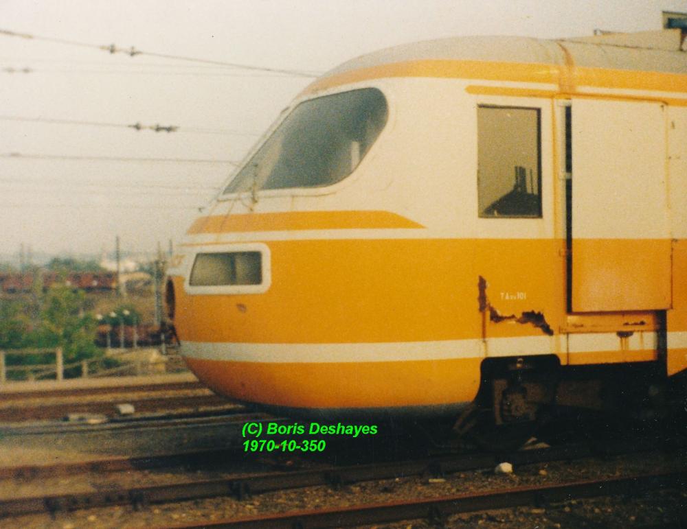J'ai d'ultimes photos dont une de la motrice diésel dont il ne subsiste plus que le châssis sur les bogies, faite en août, mais je n'en ai pas encore scanné sa pochette d'origine. Cette photo est toutefois visible dans le livre des Editions du cabri consacré aux turbotrains, écrit par André Rasserie et Laurent Thomas, dans le chapitre consacré au T.G.S.