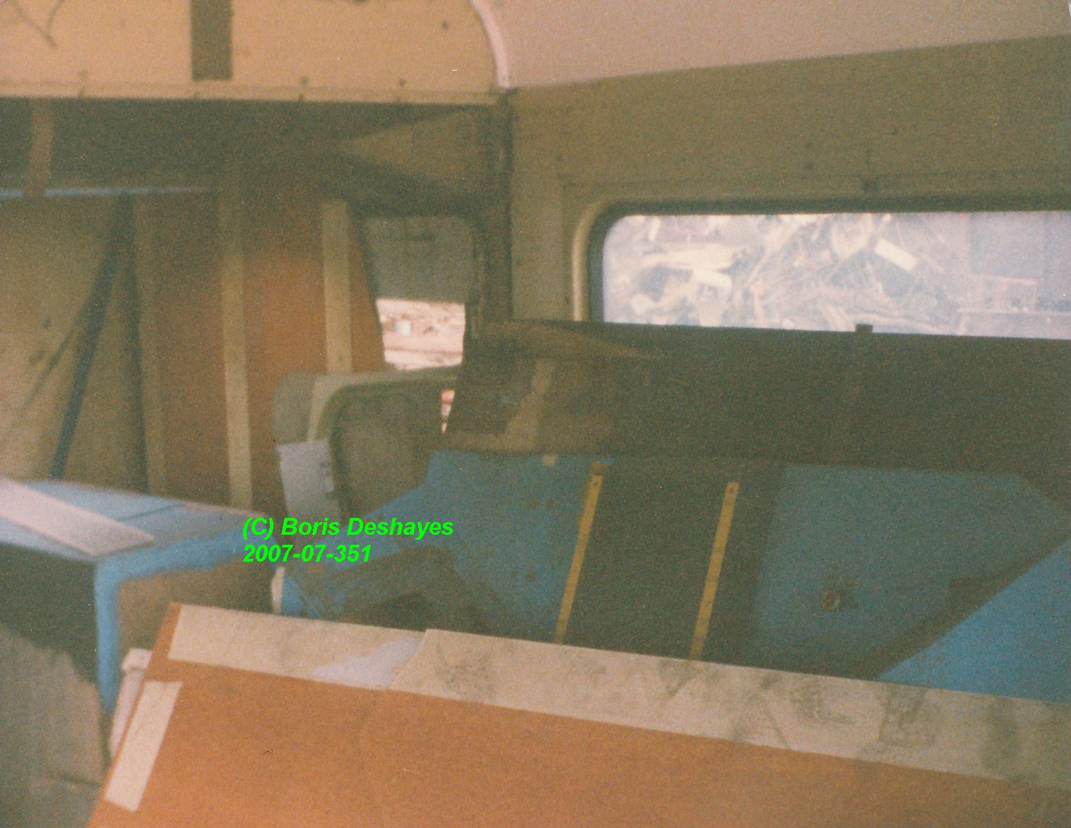 L'ancien compartiment de première classe de la motrice turbine vu depuis le compartiment laboratoire: