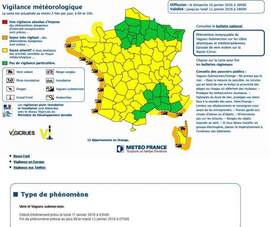 il parle surtout d'un vague assez importante vagues de submersion en vigilance et de coup de vent sur la corse..