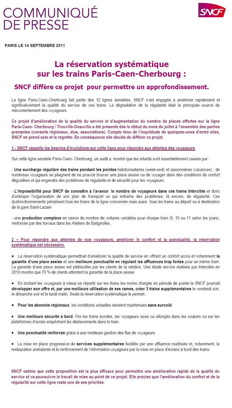 J'ai souvenir qu'avant le cadencement, le vendredi des trains supplémentaires direction Trouville circulaient. Avec le cadencement, plus de trains supplémentaires et des trains blindées jusqu'à la gue.le. La lettre de capitulation momentanée de la SNCF sur la résa obligatoire sur Paris Caen Cherbourg. :
