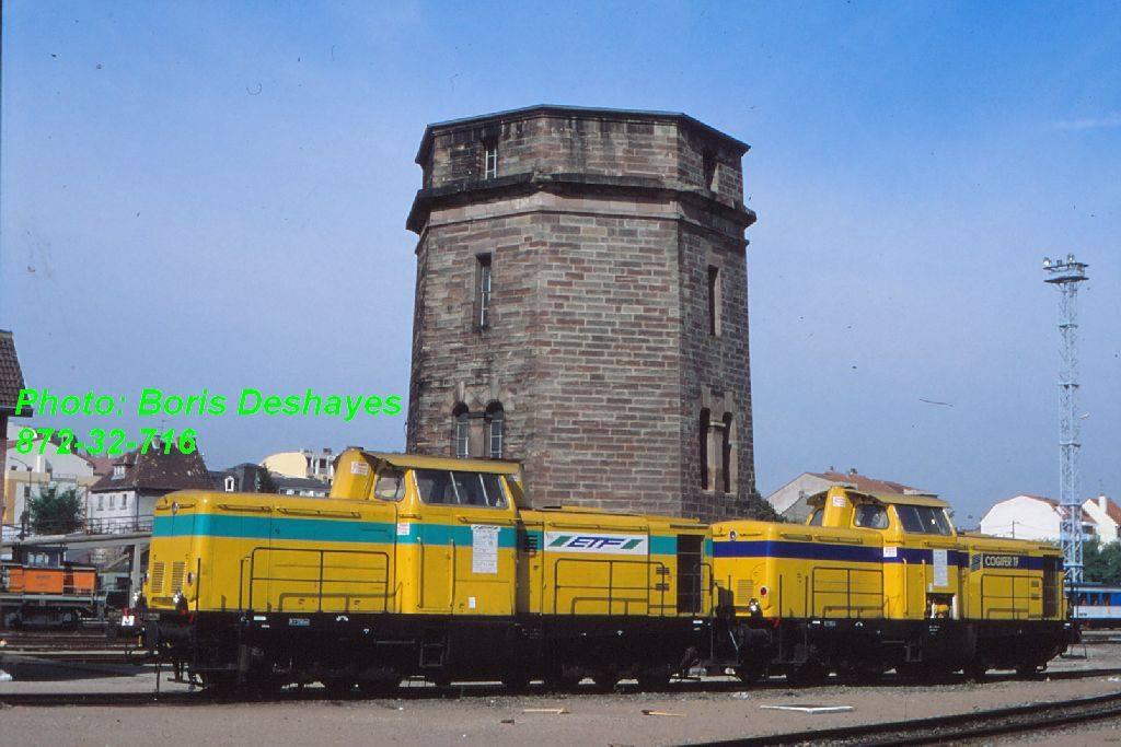 Le 29 septembre 1997, deux locomotives d'origine allemande et appartenant à l'entreprise Cogifer se reposent dans le dépôt de Metz-Sablon (57).