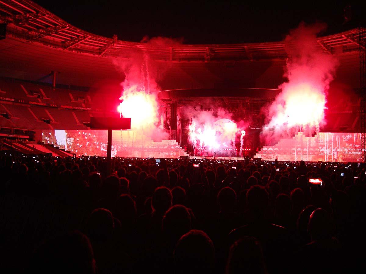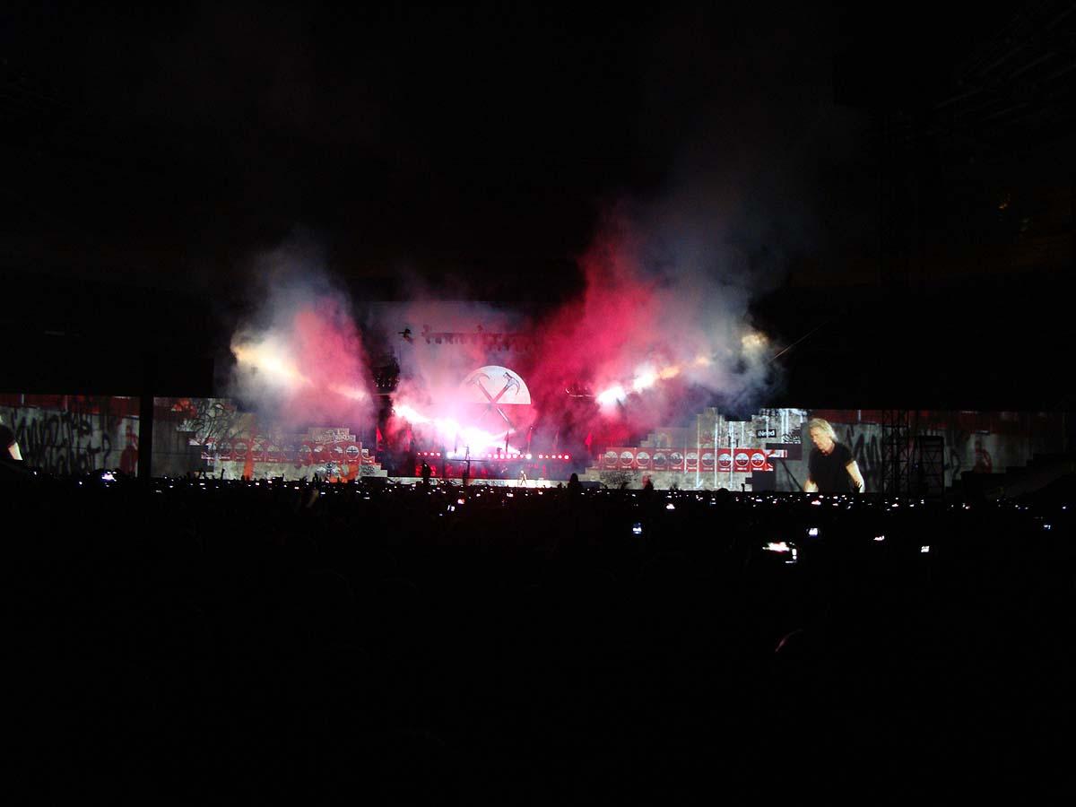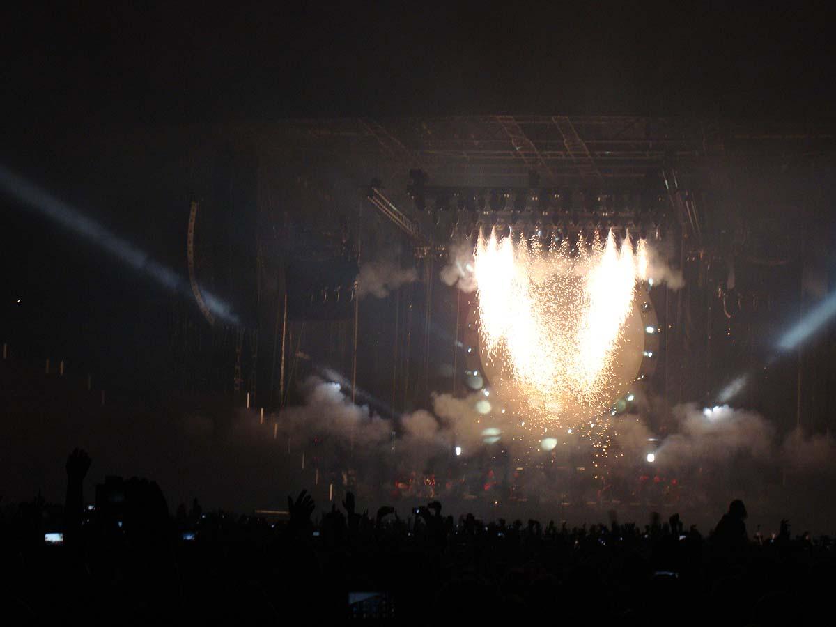 Enfin, 20h30, le feu embrase la scène, 2 heures de "délire", effets spéciaux, "The Wall" prend forme.