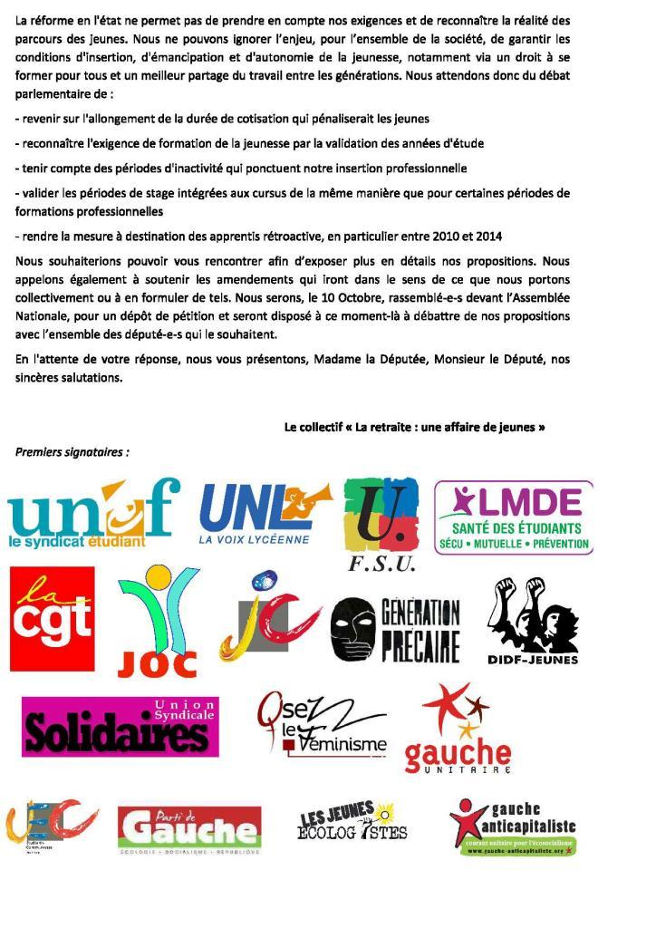 le collection "syndicats associations et partis de gauche ","la retraite une affaire de jeunes" ecrivent aux députés
