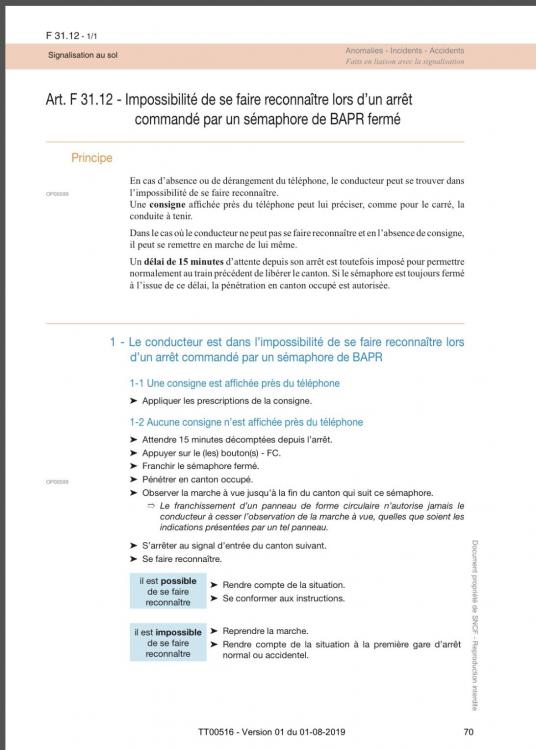 « Après arrêt devant un sémaphore de BAPR par compteur d’essieux fermé et impossible de se faire reconnaître ,le conducteur doit s’efforcer d’obtenir des instructions d’un agent du SGC