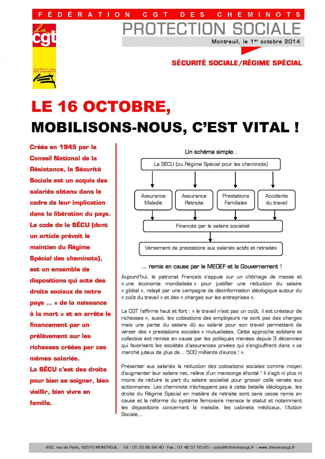 Préavis grève - Sécurité Sociale/Régime spécial - CGT- Jeudi 16/10