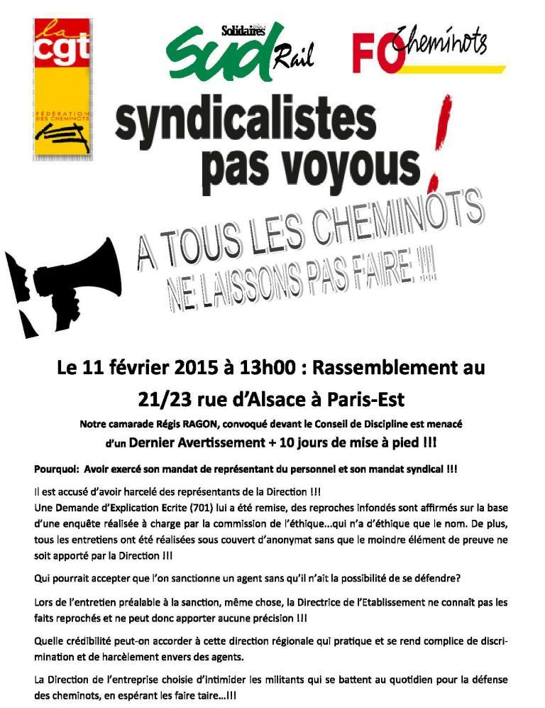 Rassemblement unitaire à paris Est le 11 fevrier 2015