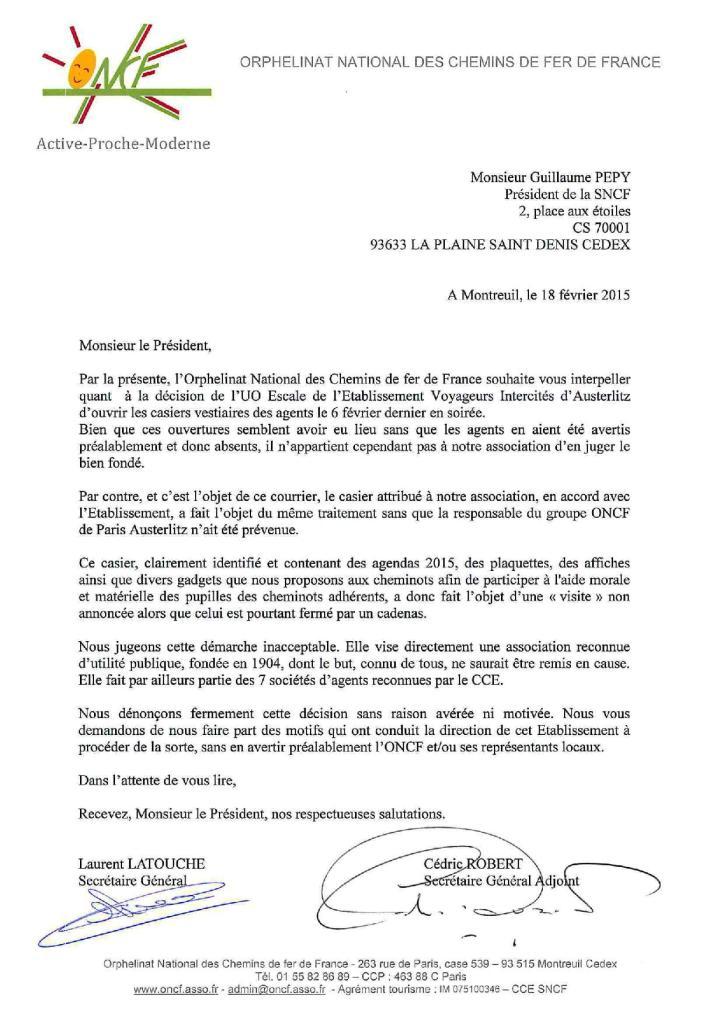 suite a l'ouverture sans aucunes précautions élémentaire des coffres, lettre de l'oncf a pépy