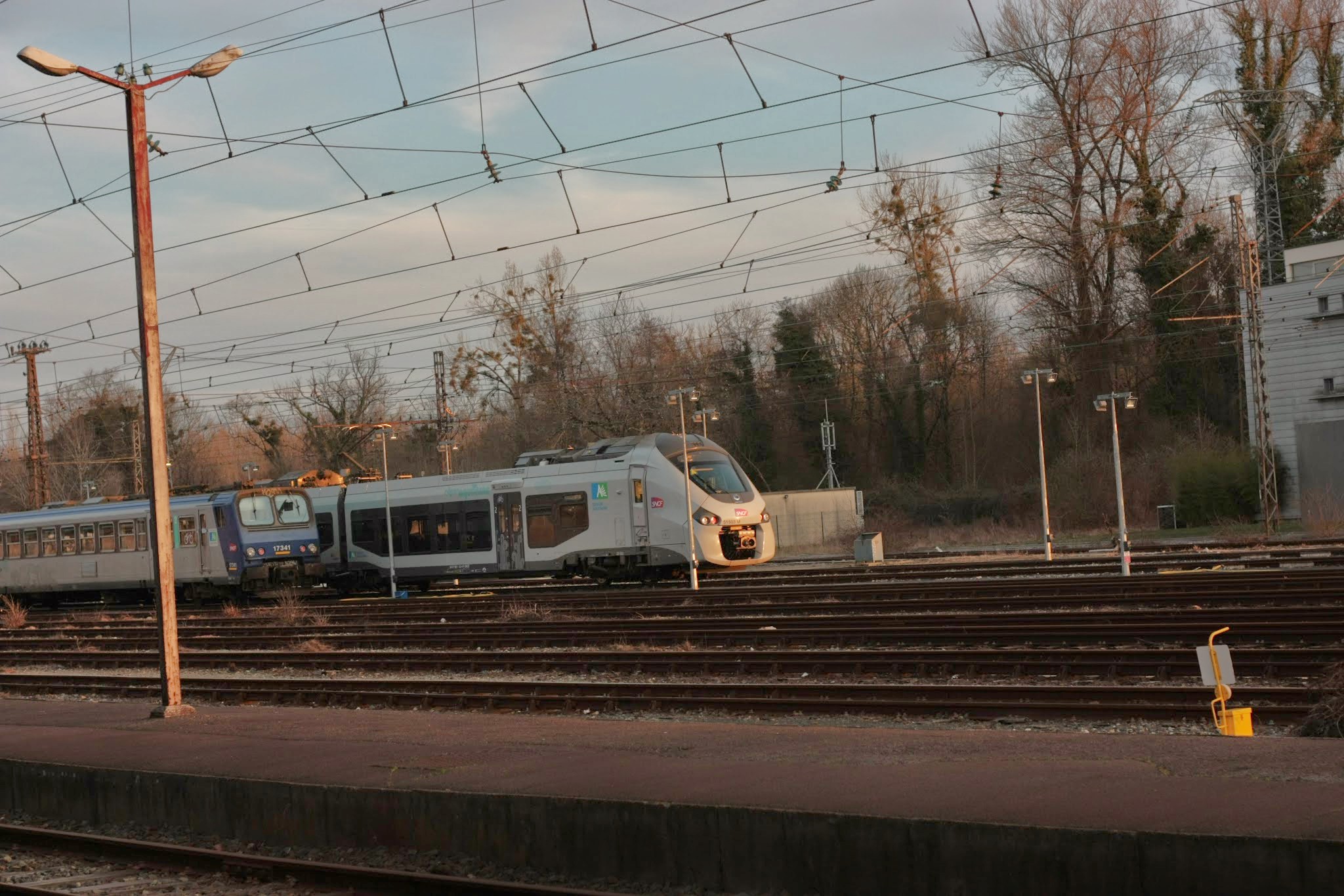Voilà longtemps que je traquais ma proie, et la voilà, (enfin prise de loin, certes, et avec son grand frère) ; un régiolis de la région Aquitaine (Z 7341 et Z 51503) :