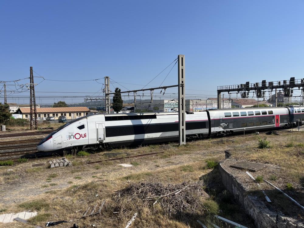 Voici la Duplex 292, immobilisée en gare de Sète alors qu’elle était engagée sur le 6258 (Perpignan -> Paris Gare de Lyon). Le trafic TGV/OUIGO/IC/TER fut paralysé ce jour là en raison d’un incendie aux abords des voies entre Sète et Montpellier. Elle ne sera autorisée à repartir qu’à 16:50, soit avec +2H25. Photo prise le 27/06/2023