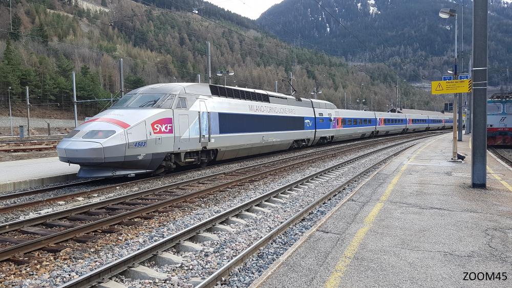 • Modane, le 15/04/18. La rame 4503 sur le 9248 Milan--Paris Gare de Lyon.
