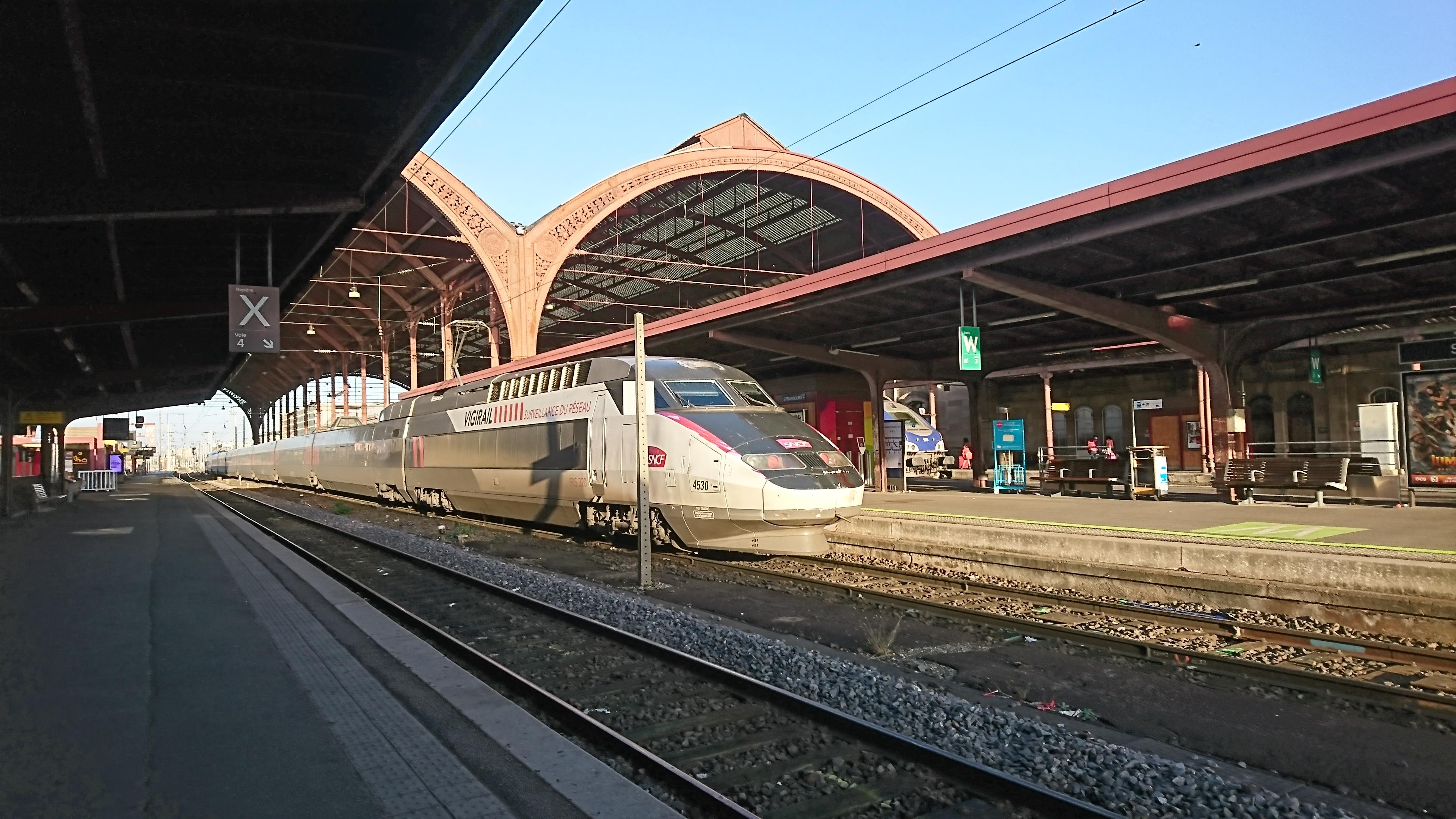 Tout d'abord la version bicourant, avec la rame Réseau 540 assurant le TGV 5450 Strasbourg - Bordeaux-Saint-Jean: