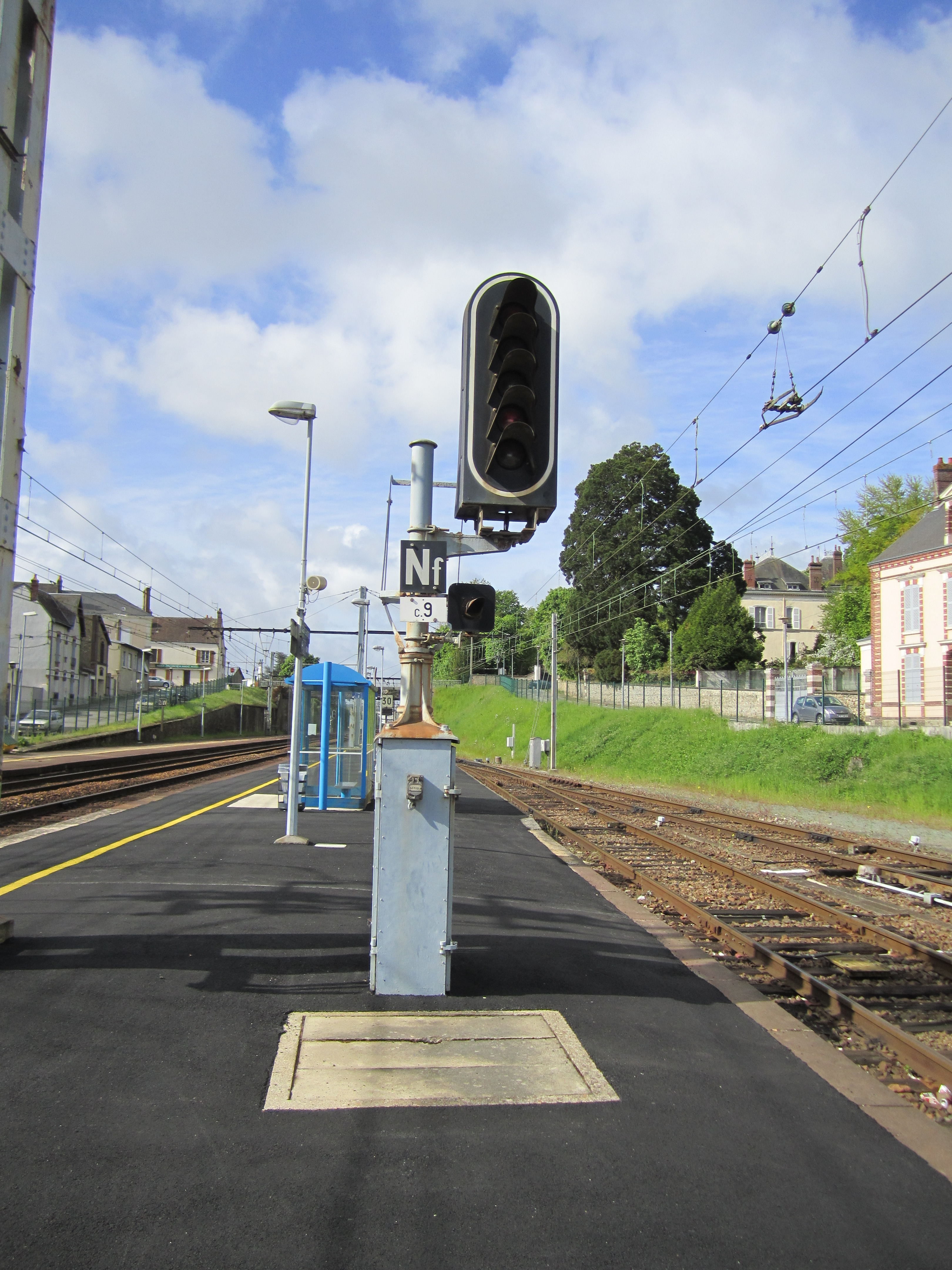 Signaux Etat en gare de Nogent Le Rotrou, ces signaux datent de la fin des années 30 (la cible a été changée)