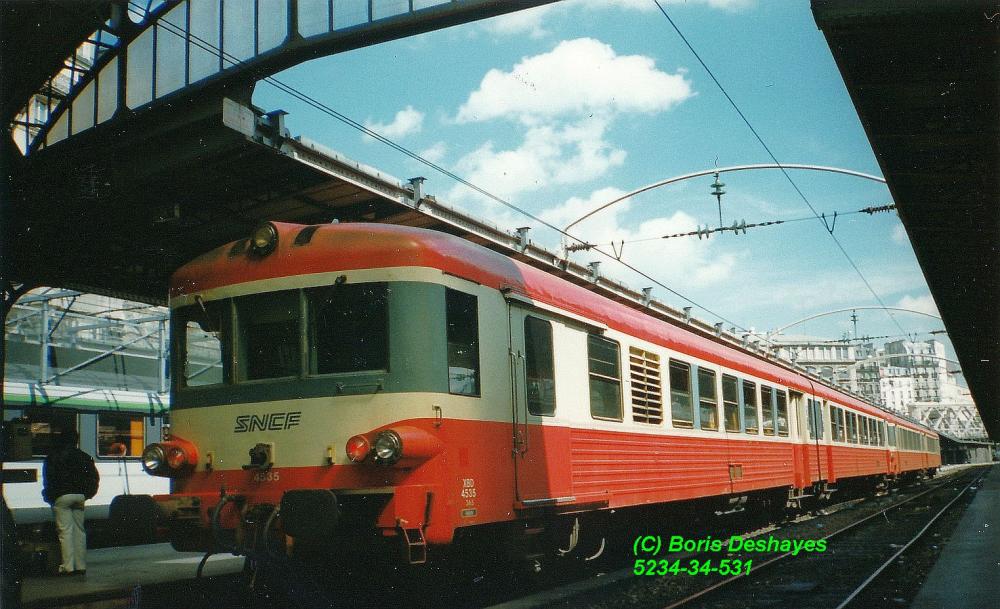 Les X4535-XR8307 et X4564-XR8630 sont en gare de Paris-Est (75) d'où ils assureront un train pour Provins ou la Ferté-Gaucher, en juin 1995.