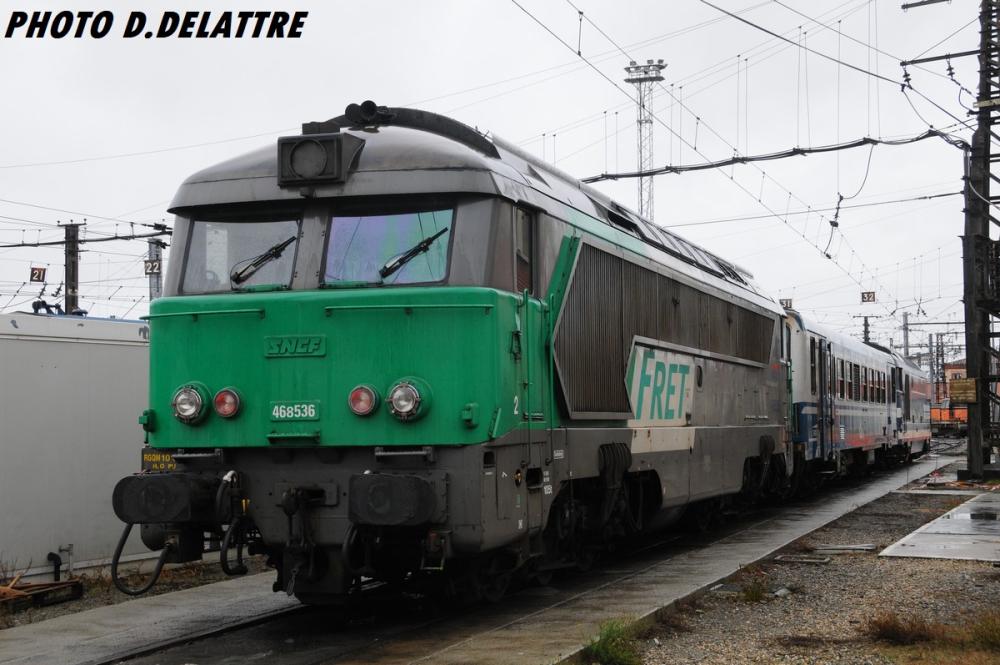 • On aperçoit la BB 67624 derrière la 68536 La BB 67612 au départ de la gare Matabiau le 19/12/2004