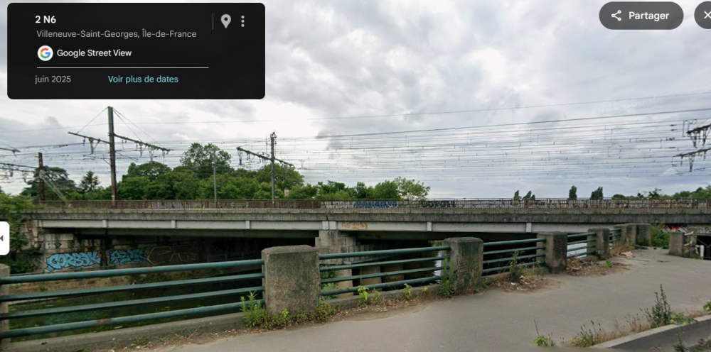 VSG N6 après la age en direction du sud, pont rail au dessus de l'Yerres, je passe.