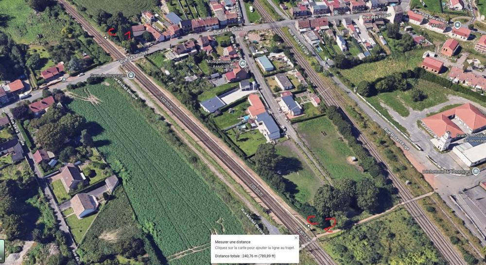 • J'ai un exemple situé à Beuvrages P.N 151 prêt de Valenciennes avec la protection d'une bifurcation où un autre Carré a été installé 240 avant pour ne pas bloquer le PN lors d'attente longue Beuvr