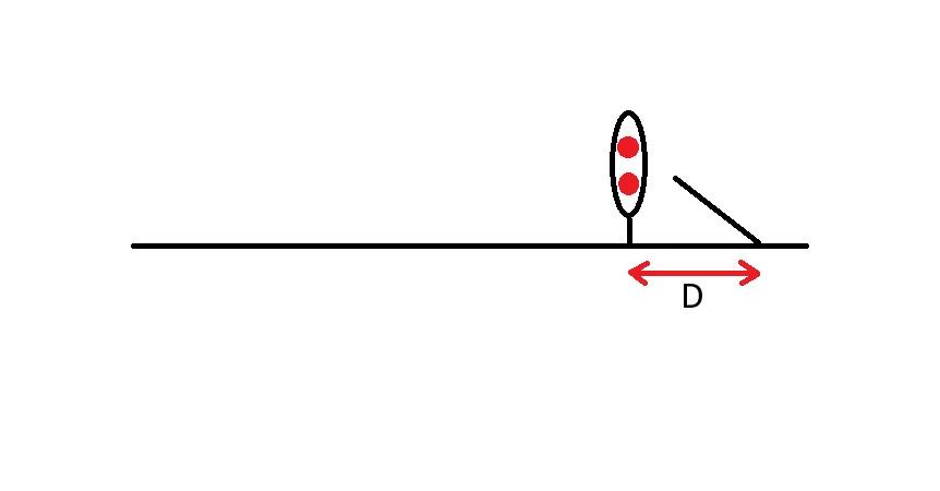 La distance D en question est normée, elle doit être trouvable dans des textes infra, ce soit sûrement être en fonction de la vitesse max sur la ligne. Si quelqu'un a le temps de chercher...