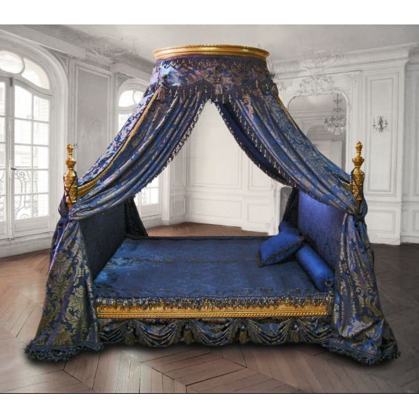 lit-baroque-baldaquin-bois-dore-tissu-bl